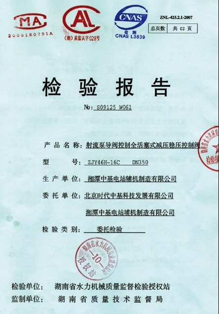 • 水力機械質量監督檢驗報告