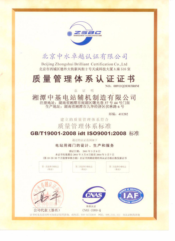 • 質量管理體系認證證書