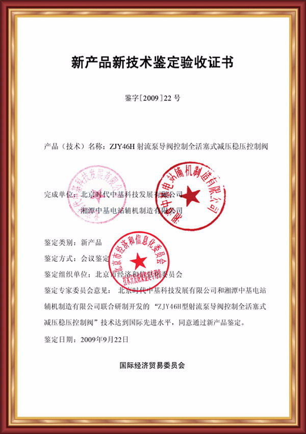 • 新產品新技術鑒定驗收證書