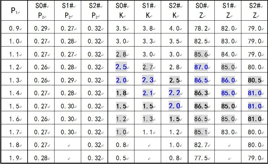 注:P1為進口壓力(MPa);P2為出口壓力(MPa);K為主閥開程(mm);Z為噪聲聲壓級(dB)。